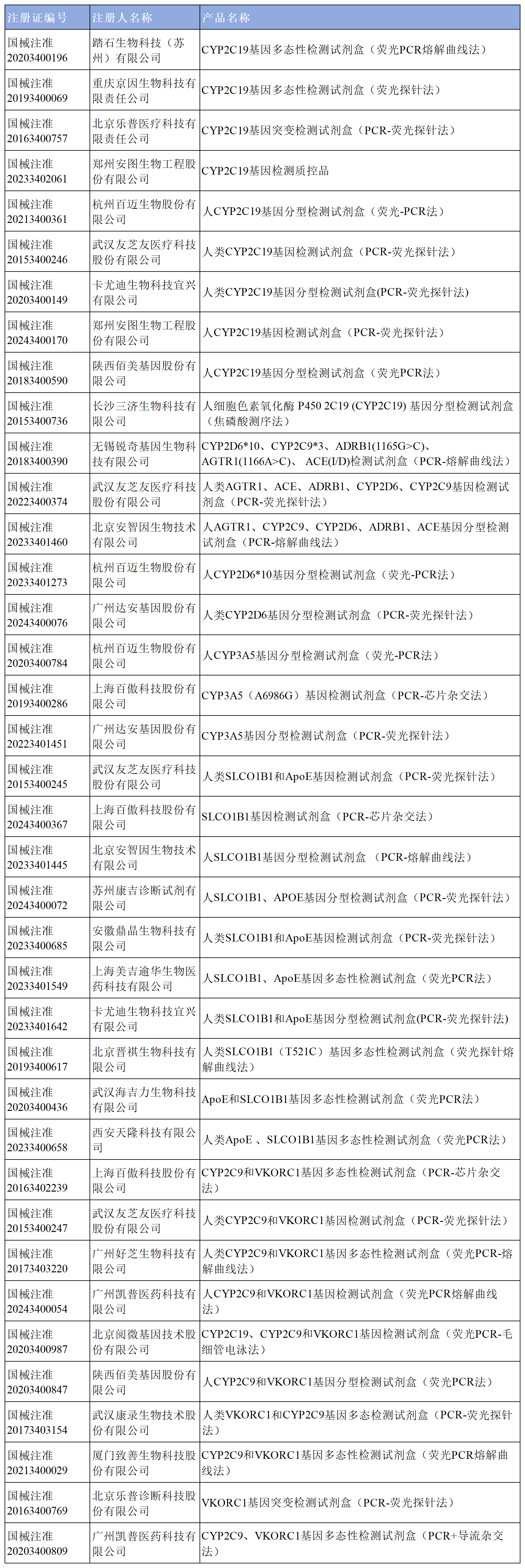 截至2023年9月,國(guó)內(nèi)批準(zhǔn)個(gè)性化用藥相關(guān)基因檢測(cè)產(chǎn)品包括CYP2C19、CYP2C9、UGT1A1、CYP2D6、ALDH2、CYP3A5、SLCO1B1、VKORC1、APOE、ACE、TOP2A、PML-RARα等標(biāo)志物。檢測(cè)常用的方法有實(shí)時(shí)熒光聚合酶鏈反應(yīng)(polymerase chain reaction,PCR)、PCR?電泳分析、PCR-基因芯片法、PCR-Sanger測(cè)序、熔解曲線法等分子生物學(xué)方法。