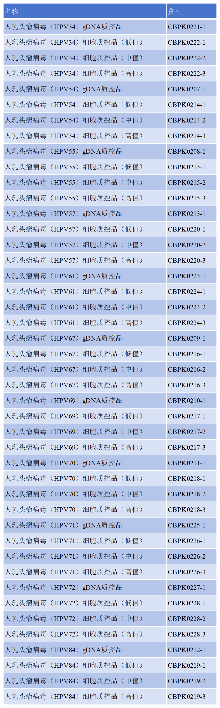 前期,科佰生物已經(jīng)推出了18種高危型和9種低危型的HPV分子診斷標準品,詳情可以點擊【免費試用】人乳頭瘤病毒HPV核酸檢測標準品新品上線,可申請免費試用 查看。