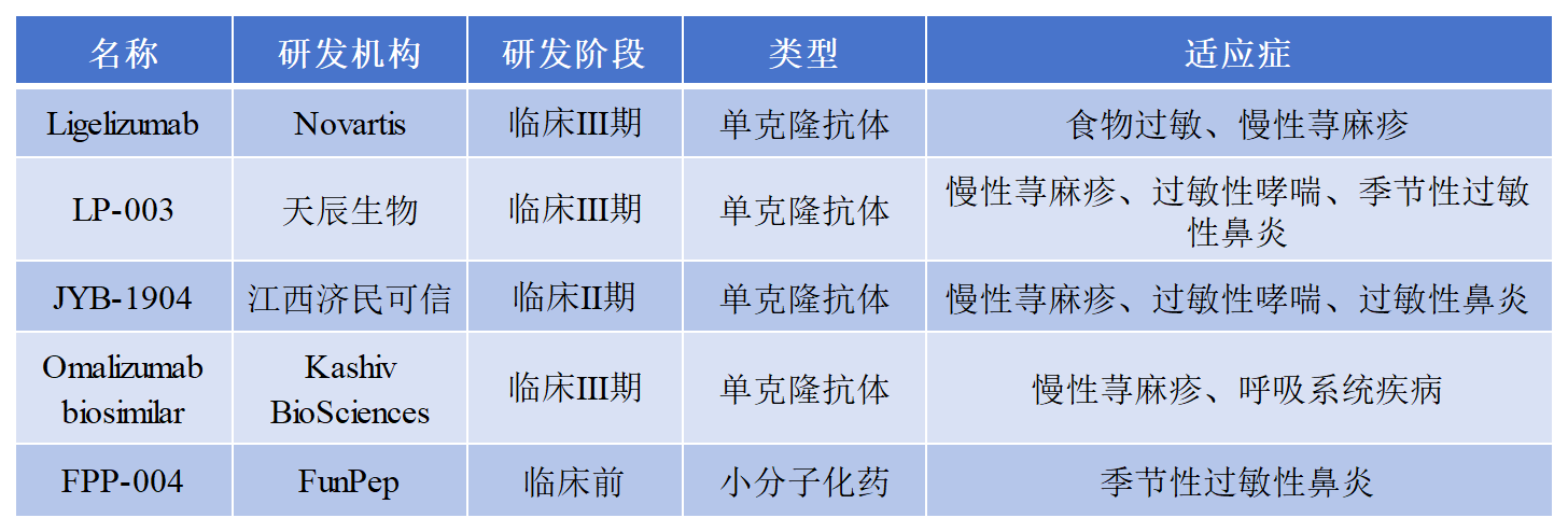 2025年3月2日,中國創(chuàng)新型生物制藥企業(yè)天辰生物醫(yī)藥(蘇州)有限公司公布了其自主研發(fā)的新一代抗IgE抗體LP-003治療慢性蕁麻疹的II期臨床中期數據。結果顯示,LP-003在關鍵療效指標上優(yōu)于現有抗IgE療法奧馬珠單抗,且展現出長效優(yōu)勢,或將成為全球抗IgE治療領域的顛覆性藥物。據報道,Ligelizumab是諾華通過親和力改造的靶向Ig E的全人源IgG1k單抗,與奧馬珠單抗同為第一代IgE抗體,對IgE/FcεRI信號傳導阻滯明顯增強。JYB1904是濟民可信自主研發(fā)的靶向IgE重組人源化單克隆抗體創(chuàng)新藥,研究結果顯示其親和力更高,人源化程度更高,具有更優(yōu)的穩(wěn)定性。