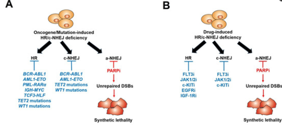 “合成致死”是指兩個非致死基因同時被抑制,導(dǎo)致細(xì)胞死亡的現(xiàn)象。當(dāng)兩個基因同時失活導(dǎo)致細(xì)胞死亡,但任一基因中的單獨失活都是無明顯毒性。在發(fā)生突變失活的腫瘤中,通過抑制其合成致死配對基因,可獲得腫瘤選擇性殺死。