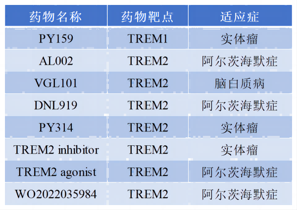 目前,針對(duì)TREM1和TREM2的研究主要集中在癌癥和阿爾茨海默癥領(lǐng)域。TREM1抑制劑可作為治療慢性炎癥和癌癥的潛在治療策略,TREM2則在阿爾茨海默癥的發(fā)展中起著關(guān)鍵作用,被確定為治療靶點(diǎn)。