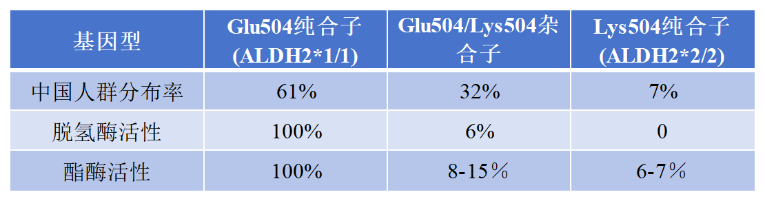 同時東方人中高發(fā)生率的急性酒精中毒也與該突變有關(guān)。突變后,酶活性缺失或者降低,導(dǎo)致乙醛在肝臟內(nèi)大量累積,會導(dǎo)致喝酒后產(chǎn)生臉紅、頭暈、心跳加速等,嚴重者甚至?xí)?dǎo)致酒精性肝病、癌癥(肝癌、消化道癌、胃癌)等不良反應(yīng)。