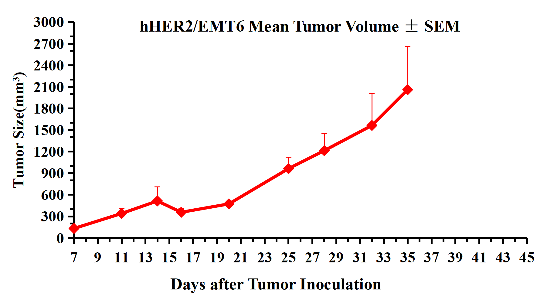 Figure 3. hHER2/EMT6 Mean Tumor Volume ± SEM .