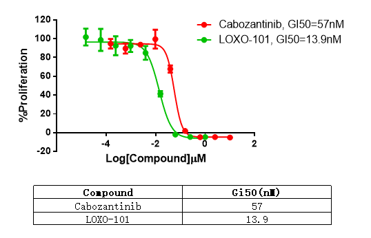 Figure 2. Anti-proliferation assay of two reference compounds on the ETV6-NTRK3/BaF3 Stable Cell Line |