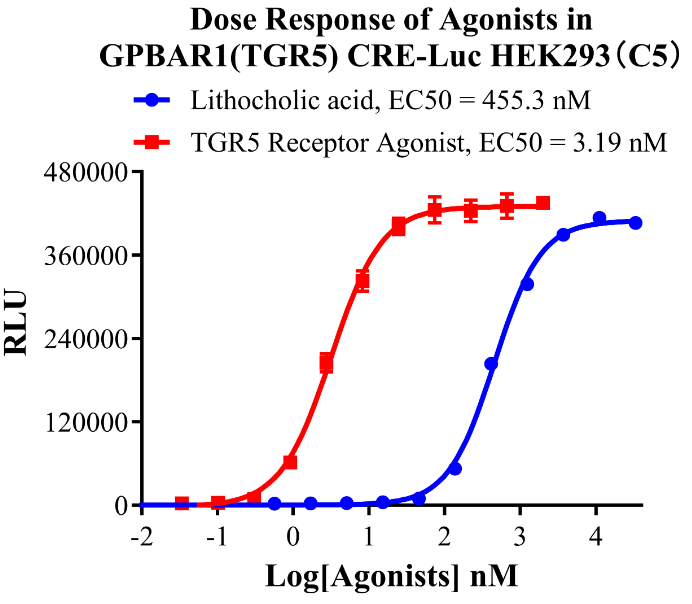 為了助力TGR5藥物的研發(fā),科佰生物及時開發(fā)了基于CREB/cAMP信號通路的TGR5細胞模型,用于候選藥物早期機理研究。